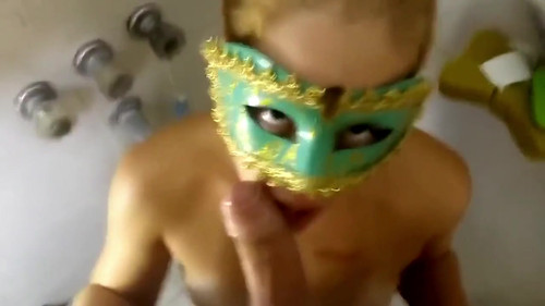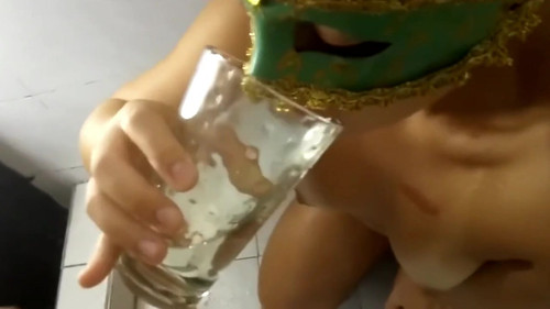 Estou de joelhos no piso frio do banheiro, a máscara teal com bordas douradas colada no meu rosto suado, meus olhos famintos olhando pra cima enquanto Leonardo, esse macho alto e musculoso de uns 35 anos, segura seu pau grosso e latejante bem na frente da minha boca aberta. O cheiro forte de mijo fresco invade minhas narinas, misturado com o suor masculino dele, e eu sinto minha buceta pulsar de tesão só de imaginar o jato quente vindo. "Abre essa boca de vadia, Paloma, vai engolir tudo o que eu te der", ele rosna, a voz rouca de excitação, e eu obedeço, esticando a língua pra fora como uma puta obediente. O primeiro jato sai forte, amargo e quente, acertando direto na minha garganta, e eu engasgo um pouco, mas engulo vorazmente, o som de glup glup ecoando no box úmido enquanto o mijo escorre pelos cantos da minha boca. Ele ri, sádico, e dá um tapa forte na minha cara, o estalo seco fazendo minha pele arder, "Isso, sua puta casada, bebe o mijo do teu macho enquanto teu corno tá trabalhando". Eu gemo alto, "Aai, sim, me bate mais, Leonardo, eu sou uma vadia viciada em caralho e mijo, meu marido é um corno manso que adora saber que eu tô aqui chupando pau alheio". Ele continua mijando, agora mais devagar, e eu abro a boca larga, deixando o líquido dourado encher como uma taça humana, sentindo o gosto salgado e quente se espalhar na minha língua, o cheiro almiscarado me deixando tonta de desejo. Enquanto isso, ele estica a mão e dá tapas nos meus peitos expostos, os mamilos endurecendo com cada palmada, "Toma, sua safada, teus peitos vão ficar vermelhos de tanto tapa", e eu grito de prazer misturado com dor, "Bate mais, porra, me usa como tua privada particular!". O mijo transborda da minha boca, escorrendo pelo queixo e pingando nos azulejos, o som de gotas caindo como uma chuva erótica, e eu engulo tudo, lambendo os lábios, implorando, "Mais, Leonardo, me dá mais desse mijo delicioso, eu preciso dele pra sobreviver".