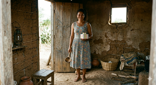 Cheguei lá com o presente na mão: uma caixinha simples, embrulhada em papel colorido que comprei na cidade. Quando entreguei, os olhos dela brilharam como se fosse Natal. “Pra mim?”, perguntou com aquela voz rouca. Abriu devagar, viu o perfume vagabundo e o batom barato. “Nossa, Daniel… ninguém nunca me deu nada assim.” Sorriu mostrando os dentes faltando na frente, e eu já estava imaginando aquelas axilas peludas roçando na minha cara enquanto ela gemia.