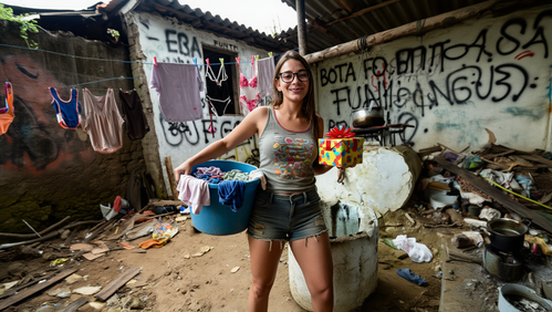 Eu chego e ela já me vê, aquele sorriso safado se abrindo enquanto o sol bate nas paredes rabiscadas de “BOTA FUNK” e “FUNTK”. “Daniel, seu safado… trouxe o que eu pedi?” pergunta ela baixinho, voz rouca de quem já tá molhada só de me ver. Eu mostro a caixa de leite condensado de 1kg e o bolo de laranja clarinho que escondi no bolso. “Abre essa boca e esse cu pra mim, Silvana, que hoje o marido vai continuar sem saber que a esposinha dele é uma puta nojenta que ama bunda cheia.” Ela ri, joga a bacia no chão sujo, me puxa pelo cinto e enfia a língua na minha boca ali mesmo, no meio do quintal fedido. O cheiro dela sobe forte: suor azedo misturado com desodorante barato vencido, perfume de farmácia e aquela buceta que já tá pingando só de imaginar. Minhas mãos descem rápido, puxo o short dela pra baixo, ela tira a regata num segundo e fica só de calcinha velha, toda suada, as tetas balançando enquanto a gente se beija babando.