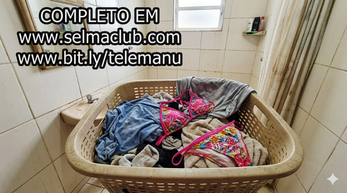 O coração dele já batia forte. Foi direto pro banheiro, abriu o cesto de roupas sujas e lá estava: o biquíni rosa florido, jogado por cima de toalhas e roupas, ainda QUENTE, ainda ÚMIDO, com o cheiro dela saindo como um perfume proibido.