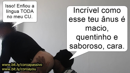 Ele me virou de costas, abaixou meu short e ficou olhando meu cu como se fosse a coisa mais linda do mundo. “Que bunda branquinha e linda você tem, caralho”, ele falou, a voz rouca de tesão. Eu respondi baixinho, já sentindo o cu piscar: “Vai com calma, hein… mas pode cheirar, pode lamber, pode fazer o que quiser”. E ele fez. O safado ficou maluco. Abaixou o rosto, abriu minha bunda com as duas mãos e enfiou o nariz bem no meio. Cheirou fundo, gemeu alto, como se meu cheiro de macho passivo fosse a melhor coisa que ele já sentiu na vida. Depois veio a língua. Quente, molhada, rodando no meu buraco, enfiando devagar. Eu tremi inteiro. “Delícia de rabo”, ele murmurou enquanto lambia. Eu só conseguia gemer e empinar mais a bunda pra ele.