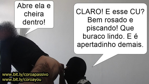 Ele metia como um animal. Tirava quase tudo e enfiava de novo, batendo fundo. De vez em quando parava, abria minha bunda e cheirava de novo, lambia o cu esticado no pau dele. “Abre ela e cheira dentro!”, eu pedia. Ele obedecia: “Claro! E esse cu? Bem rosado e piscando! Que buraco lindo. E é apertadinho demais”. Depois voltava a foder mais forte. Eu tava suado, tremendo, cu piscando no pau dele.