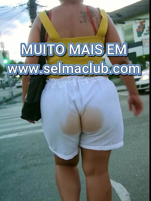 Enquanto ela andava pela calçada, rebolando a bunda, ouvi um peido alto e molhado, prrrrt, e de repente o short branco ganhou uma mancha marrom enorme no fundo, merda líquida escorrendo pelas coxas. “Caralho, cagou nas calças!”, pensei, filmando tudo, a mancha crescendo rápido, fedendo até de longe. Pessoas na rua notaram, uma mulher fez careta, um cara riu disfarçado, mas ninguém falou nada. Sofia continuou andando, sorrindo como se nada fosse, mas eu via o desconforto no rosto dela, a mancha se espalhando, o short grudando na bunda. Fiquei quieto, não avisei, deixei a puta ir pra casa assim, imaginando o corno Paulo abrindo a porta e vendo a esposa toda melada de merda, cheirando a cu fodido. “Que explicação ela vai dar pro corno? ‘Tropecei na fossa, amor’?”, ri sozinho.