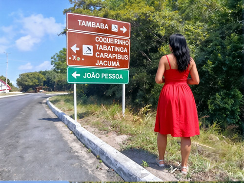 Paramos na beira da estrada, bem em frente a uma placa de sinalização marrom e verde que aponta para praias como Tambaba, Coqueirinho, Tabatinga, Carapibus, Jacumã e João Pessoa. O lugar é perfeito: isolado, com árvores altas formando uma cortina verde, o asfalto quente sob os pés, e o som distante das ondas quebrando na costa. Desço do carro, o short enfiado no rego da bunda, sentindo o vento quente soprar e arrepiar minha pele. Selma vem logo atrás, o vestido balançando, revelando flashes da calcinha vermelha minúscula. Nossos cornos, vamos chamá-los de Paulo e Tiago – dois bundões submissos que só servem pra obedecer –, montam as câmeras rapidamente, os paus provavelmente murchos dentro das calças, sabendo que seu papel é só filmar e calar a boca. "Começa a posar, Manu", diz Paulo, meu corno, com a voz trêmula, ajustando o foco. Eu me posiciono de costas para a placa, empinando a bunda, olhando por cima do ombro com um sorriso safado. O clique da câmera ecoa, e eu sinto um formigamento na buceta, sabendo que essas fotos vão para o site de Selma, onde milhares de punheteiros vão se acabar vendo nossas curvas.